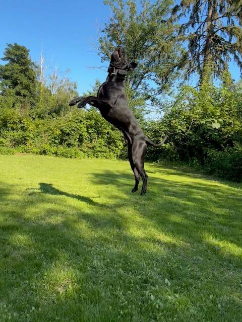 Fun Fact: Wenn zwei Cane Corsos 20 Minuten miteinander spielen, verschwinden schnell mal 20 Liter Wasser – und gefühlt mindestens genauso viel Sabber 🙂